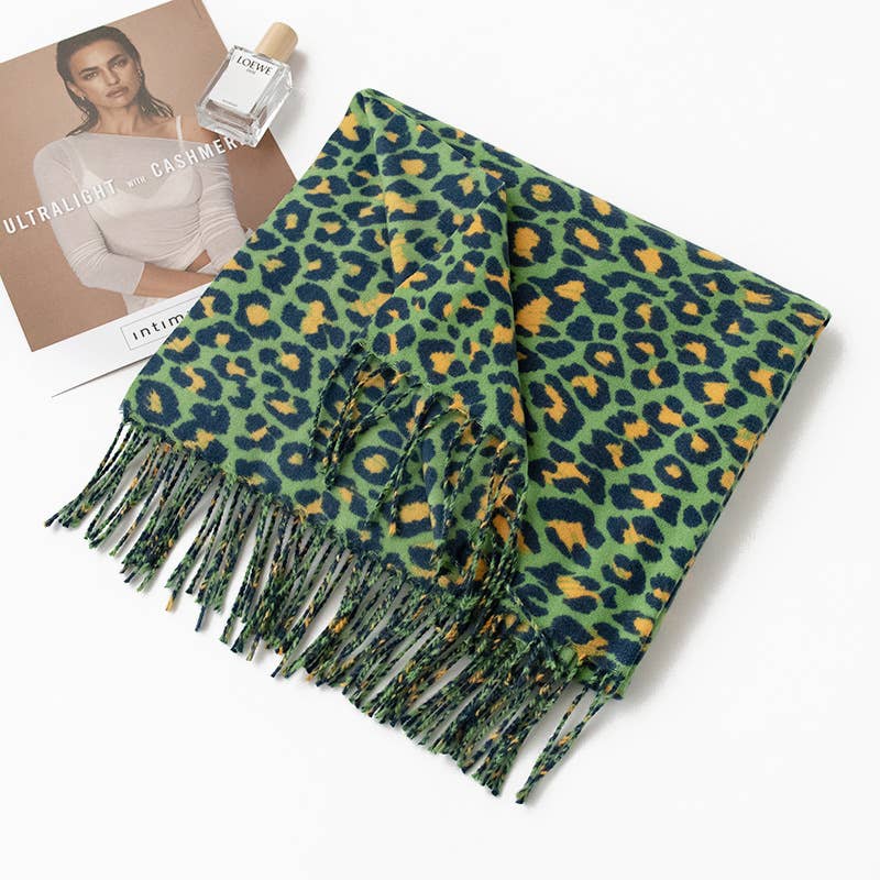 Exotic Leopard Print Fringed Soft Wool Feel Scarf